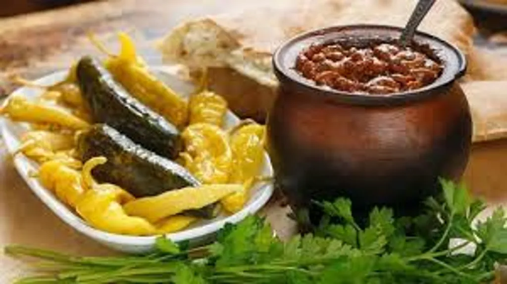 ლობიო ქოთანში მჭადით და მჟავის ასორტით
